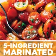 5-Ingredient Marinated Tomatoes! The best summer staple. Fresh tomatoes, punchy lemon juice, grated garlic, a little bit of olive oil, and herbs and salt to make it sing. YES.