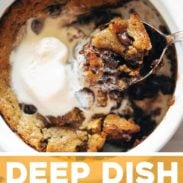 Keywords: deep dish cookie, dessert for two, ramekin dessert, cookies and ice cream, easy dessert