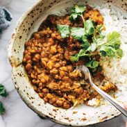 This Red Curry Lentils recipe is fabulous! As a variation, I substitute freekah for 1/2 the lentils to vary texture and nutrition. I served over baked potatoes pieces as substitute for rice.