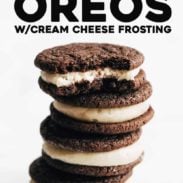 Life-changing Homemade Oreos that are soft, buttery, moist, perfectly dense chocolate cookies stuffed with cream cheese frosting. SO GOOD.