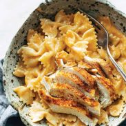 - Assembly: Toss the pasta with the creamy sauce. Arrange a sliced chicken breast on top. Sprinkle with parsley or red pepper flakes.