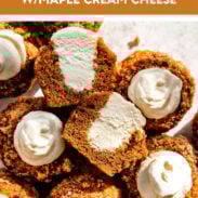4. Make Maple Cream Cheese Filling: Add the cream to a small bowl and beat until light and fluffy and stiff peaks form. In a separate bowl, beat the softened cream cheese until smooth. Fold in the whipped cream, using the beaters again to smooth it out if needed. Add the maple syrup and mix until smooth.